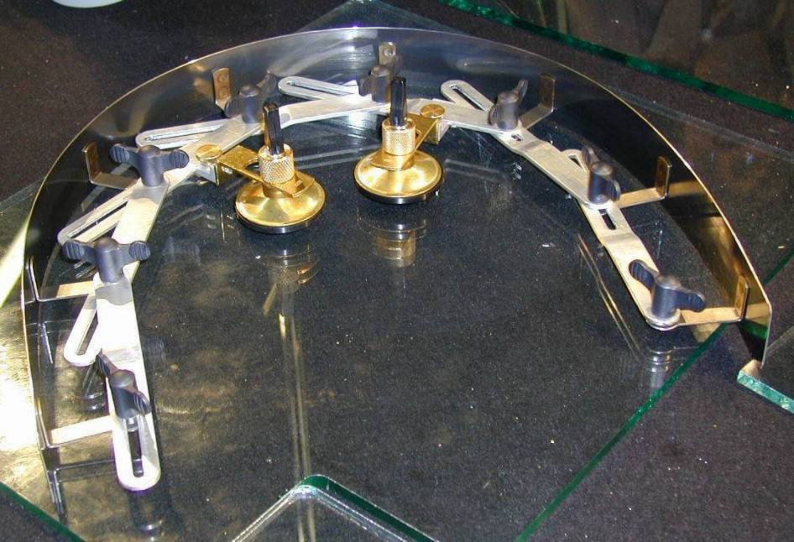 … die DSRundbogen-Abtastschablone lässt sich auch für Glaszuschnitt verwenden … einfach die fixierte Schablone auf Glasscheibe / Spiegel setzen und ausrichten – mit Saugnapf fixieren … bei der 90er-Modellschablone reichen 2 und bei der 180er werden 3 Saugnäpfe empfohlen …